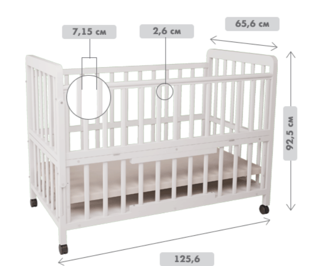 Борта не меньше, чем на 66-67 см выше опоры матраса в самом нижнем положении;